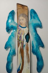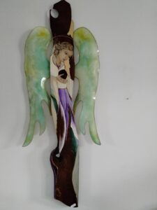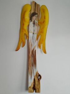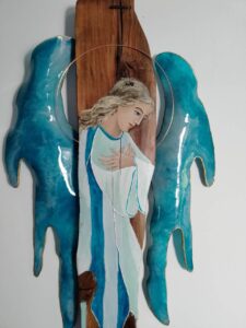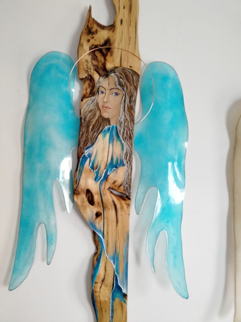 Prezentowane Anioły to mój autorski pomysł, na połączenie drewna z żywicą epoksydową.