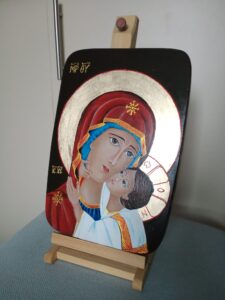 Wszystko zabezpieczone odpowiednim werniksem. Istotą ikony jest bogactwo duchowe, które po przelaniu na obraz, otworzy nas na głębię wiary, często po ludzku zakrytej.